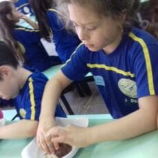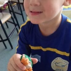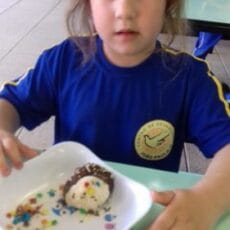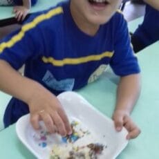 Modelando pinguins: com massinha e beijinho/brigadeiro.