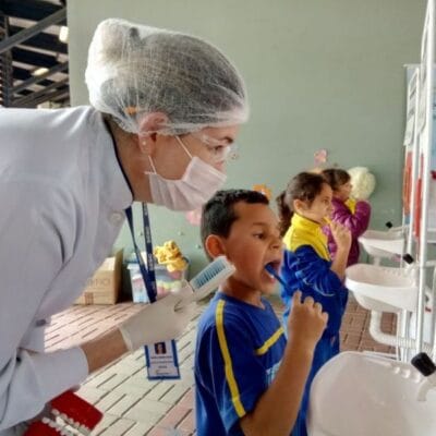 Nosso parceiro, SESC PR, preparou uma ação especial sobre a saúde bucal aqui na Escola. A equipe trouxe escovódromo, fio dental e escovas novas para ensinar sobre a escovação correta e a saúde dos dentes. As crianças adoraram a visita!