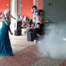 Todos os personagens e colaboradores da empresa (Janaina Wille de Assunção, Cássia Renata Cordeiro, Michele Josefa Silva, Camila Nakazawa e Ana Paula Machado) ficaram no Centro de Educação João Paulo II realizando as apresentações e distribuindo brigadeiros durante o turno e contraturno escolar, oferecendo esse momento único a todos os nossos alunos. Foi um dia inesquecível, que com certeza irão guardar com muito carinho.