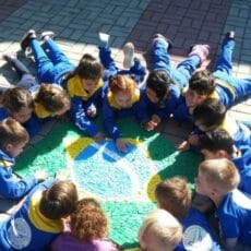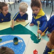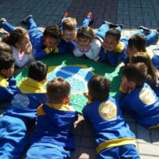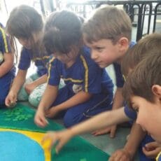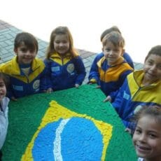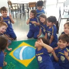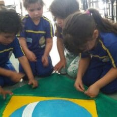 Além disso, diversas atividades especiais ocorreram ao longo da semana. Na oficina de artes, os alunos do Infantil 5 desenvolveram uma linda bandeira utilizando a técnica do mosaico.